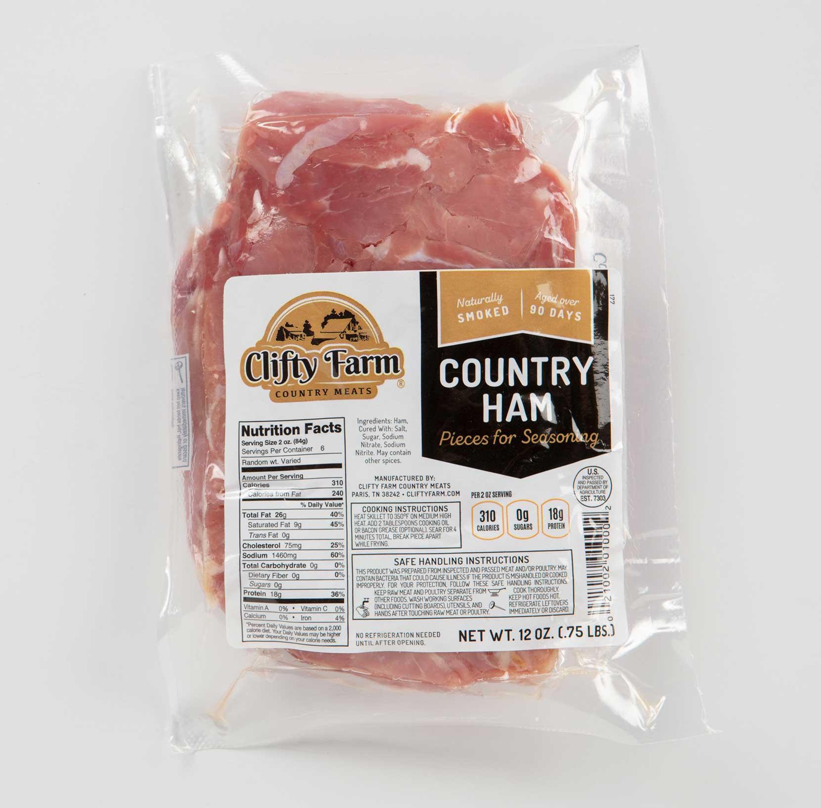 Seasoning pieces are a perfect addition for any soup, salad, potatoes, pizza topping, the options are endless! Our country ham is cured with a simple salt & sugar mix and aged for over 90 days to ensure the perfect natural country ham flavor.