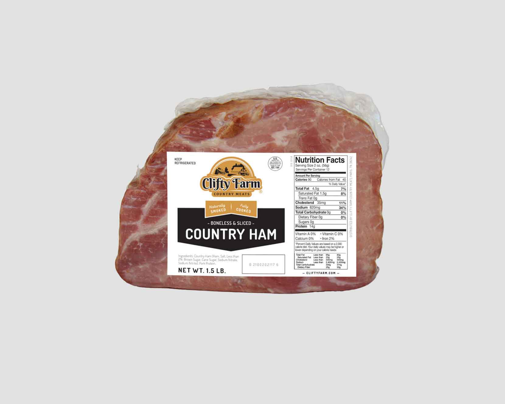 Our Fully Cooked, Pre-Sliced Country Ham is sure to turn any meal from ordinary to extraordinary. Each slice of country ham is salt-cured and aged around 90 days to ensure the authentic country ham flavor you know and love. We then slow-cook it to perfection and pre-slice it for your convenience. Best yet—it’s Fully Cooked! Heat and eat or serve at room temperature. It makes for a great centerpiece, sandwich, or salad—your options are endless.